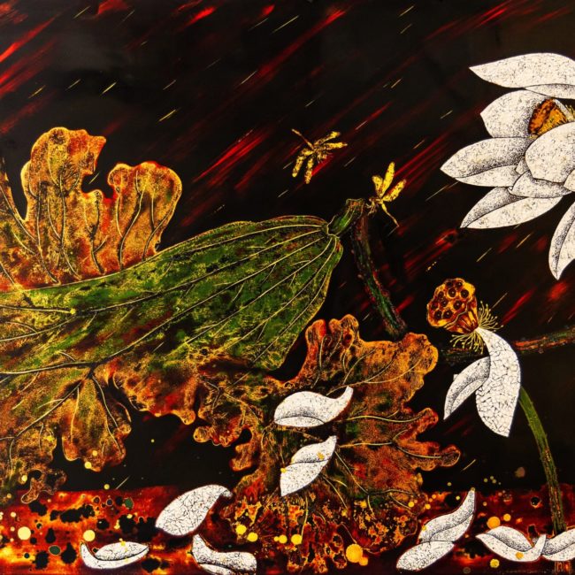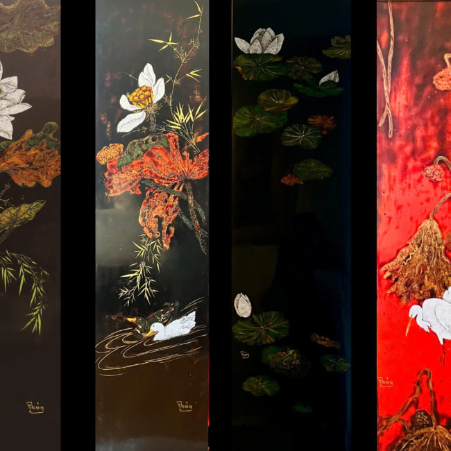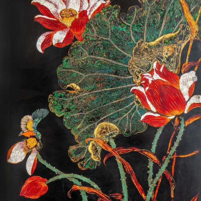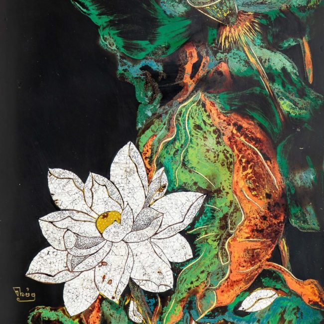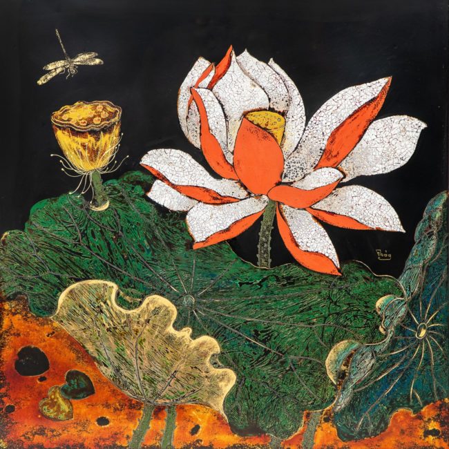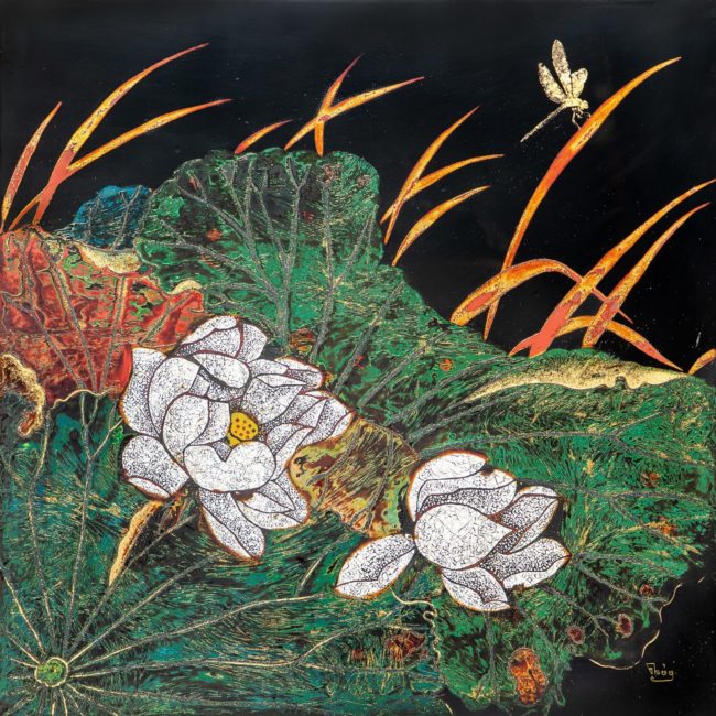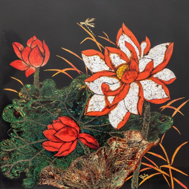 Born and having grown up in Hanoi, with a strong love for art, Thuy has found her own way to express herself through lacquer – a very special and precious material from Vietnam – to create unique paintings. Maybe still considered as a new comer in Europe, in fact, Vietnamese lacquer painting (or Sơn Mài) has been in existence for over 80 years. Previously, for thousands of years, lacquer was used for the decoration of objects.
